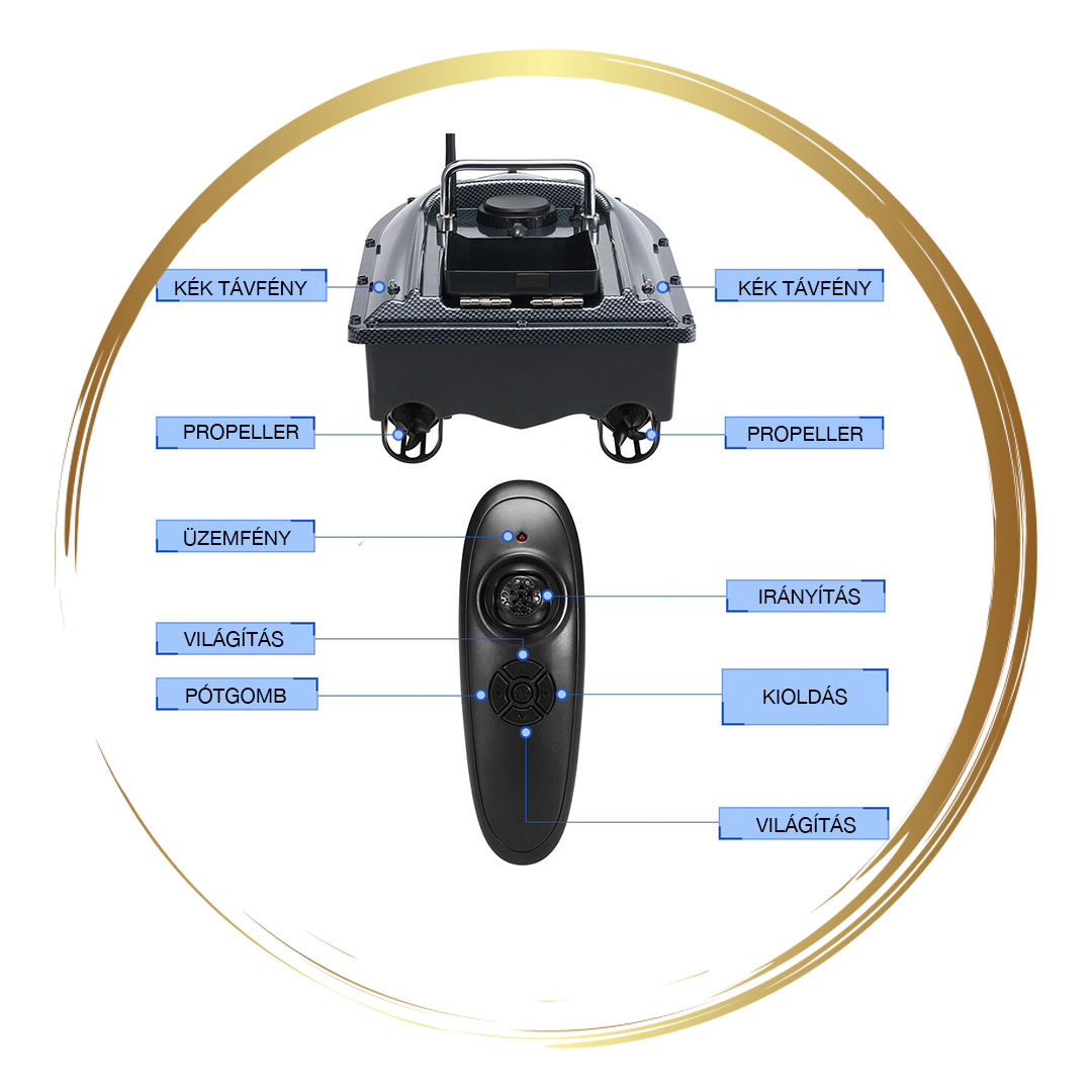 • Két nagyobb méretű tároló, mely a távirányítóval működtethető. Segítségével pontos etetést alakíthatunk ki és a szereléket is könnyedén bevihetjük