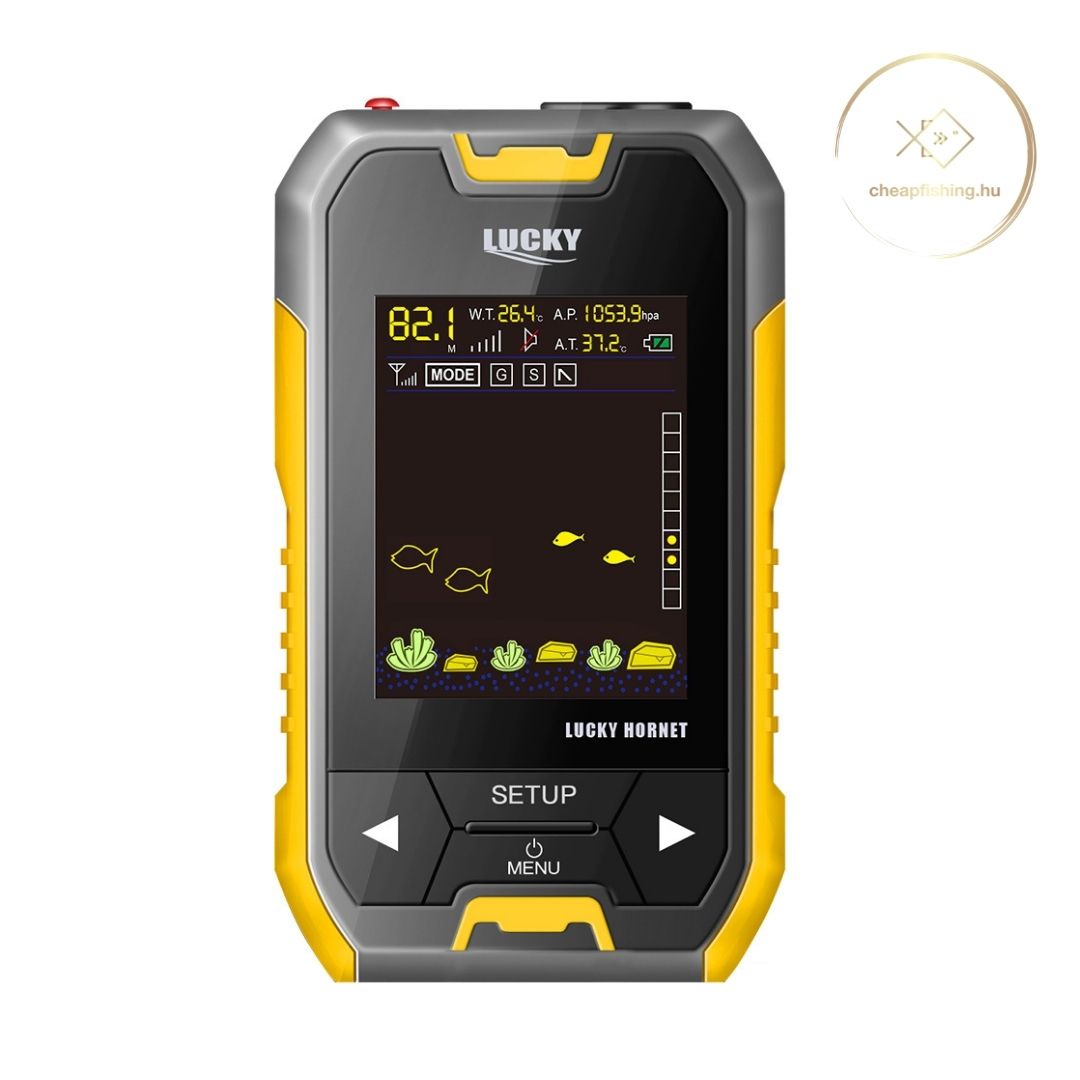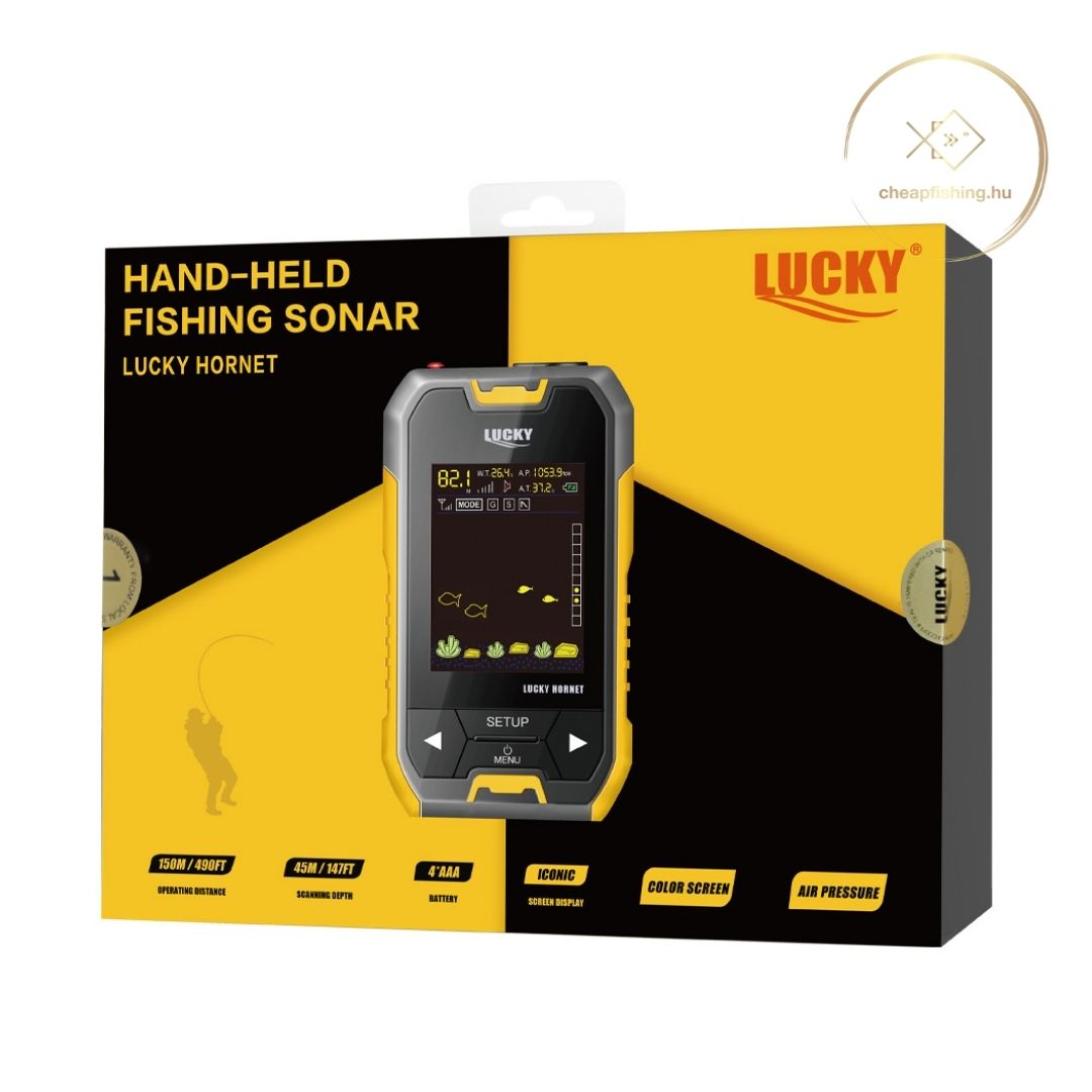 A képernyőn folyamatosan kísérhetjük a vízmélységet és halikonokat is láthatunk, így ebből következtethetünk az uszonyosok helyzetére. A Lucky Hornet H1 egy rendkívül megbízható és jó hosszútávú választás, ha egy egyszerű, de nagyszerű halradart keresünk.